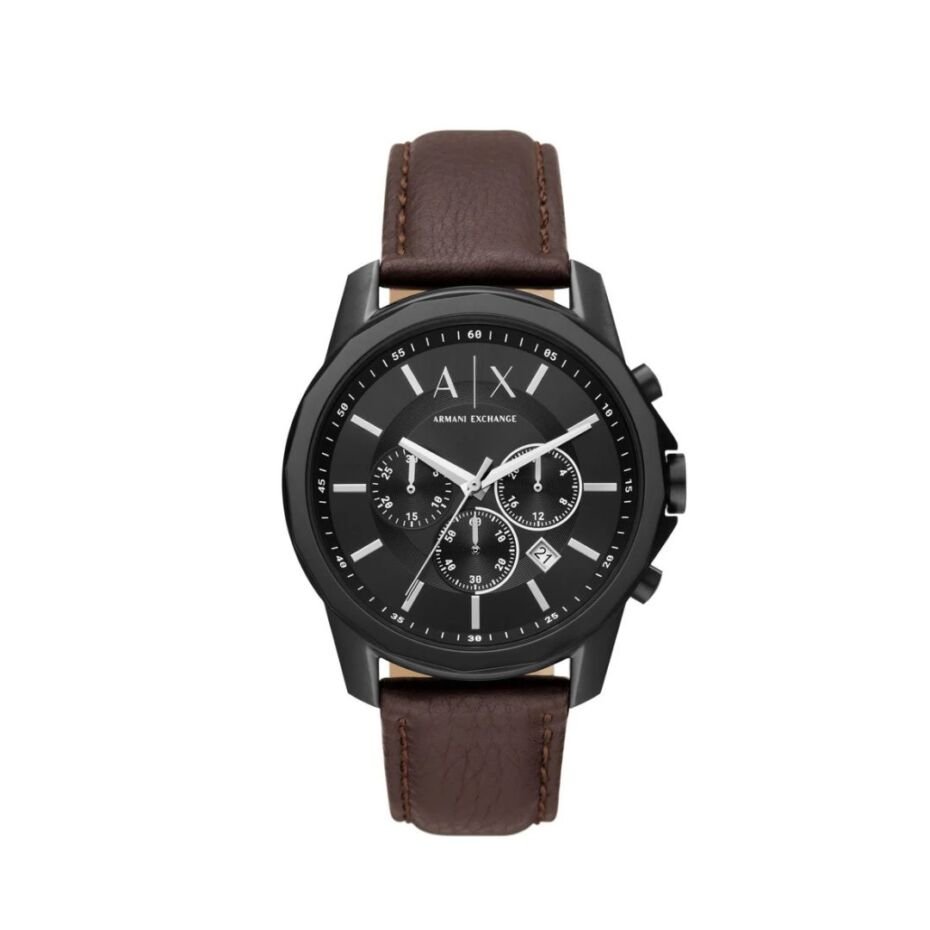 Armani Exchange Men’s Quartz Brown Leather Strap Black Dial 44mm Watch AX1732