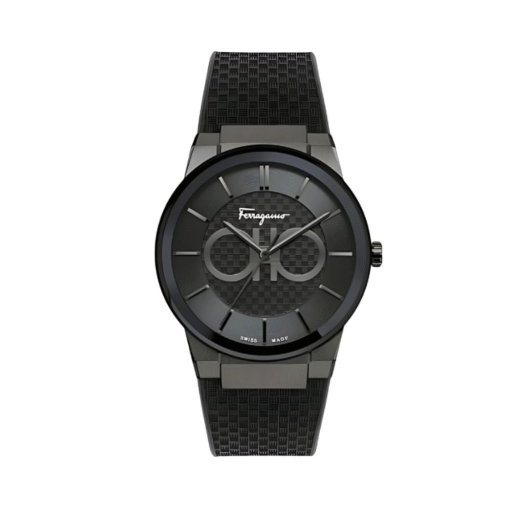 Ferragamo Men’s Swiss Made Quartz Black Silicone Strap Black Dial 41mm Watch SFHP00320