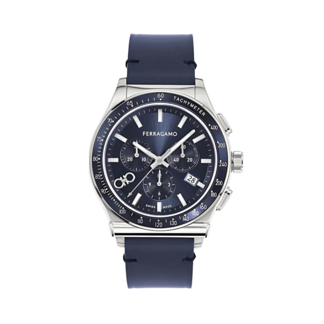Ferragamo Men’s Swiss Made Quartz Blue Leather Strap Blue Dial 42mm Watch SFKZ00223
