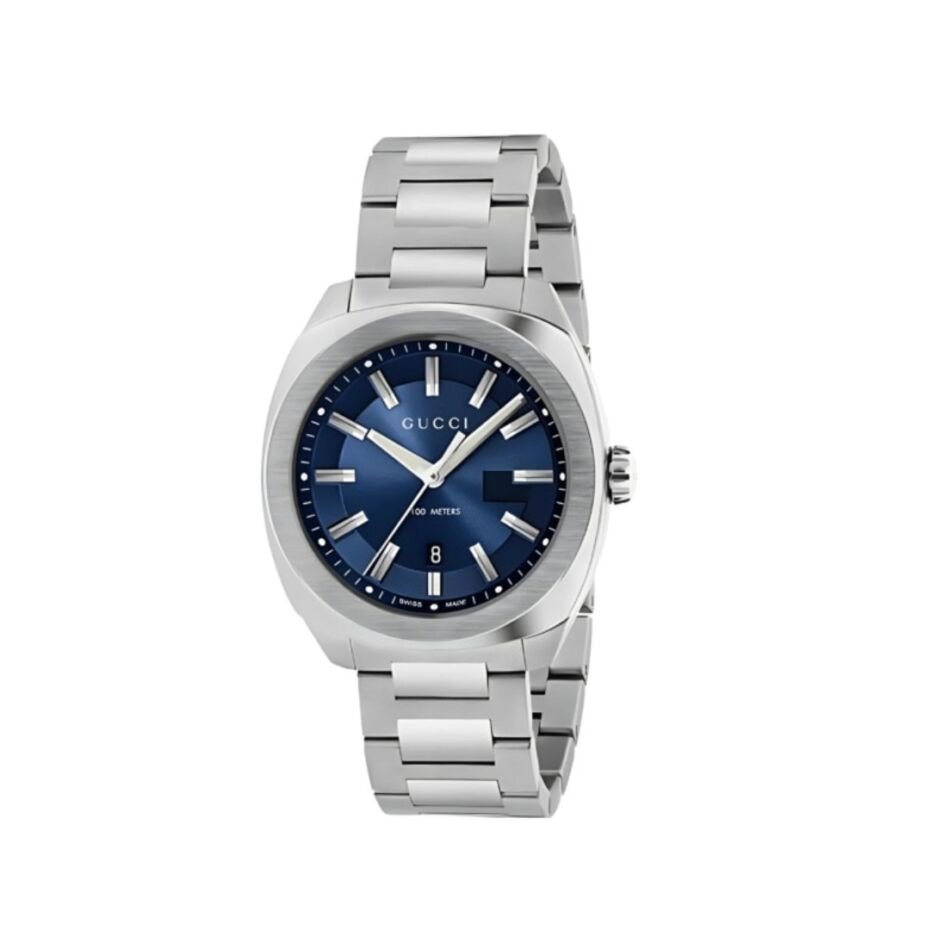 Gucci GG2570 Silver Stainless Steel Dark Blue Dial Quartz Watch for Gents- GUCCI YA142303