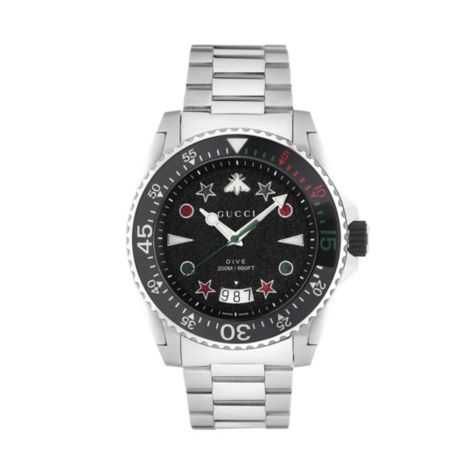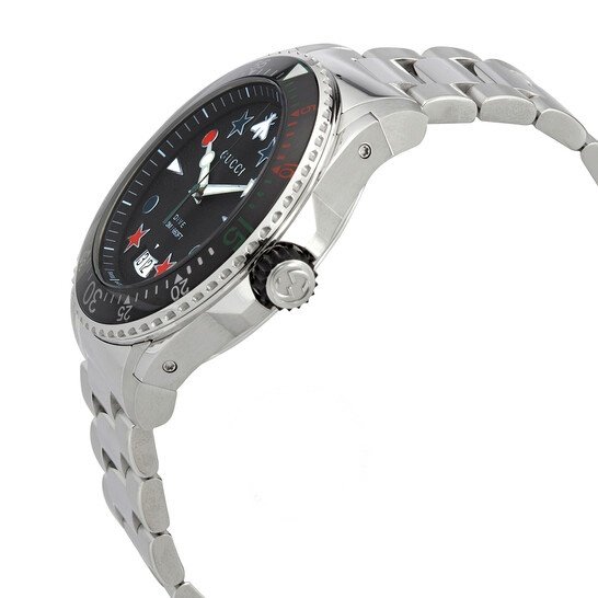 Gucci Men’s Swiss Made Quartz Silver Stainless Steel Black Dial 45mm Watch YA136221