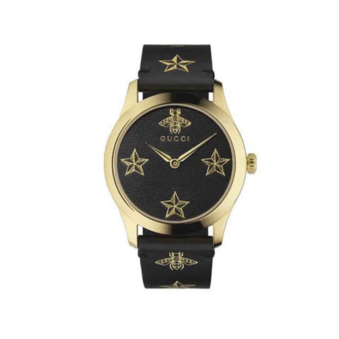 Gucci Women’s Swiss Made Quartz Black Leather Strap Black Dial 38mm Watch YA1264055