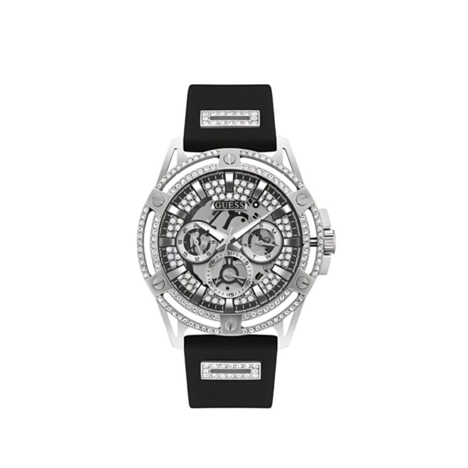 Guess Men’s Quartz Black Silicone Strap Silver Dial 48mm Watch GW0537G1