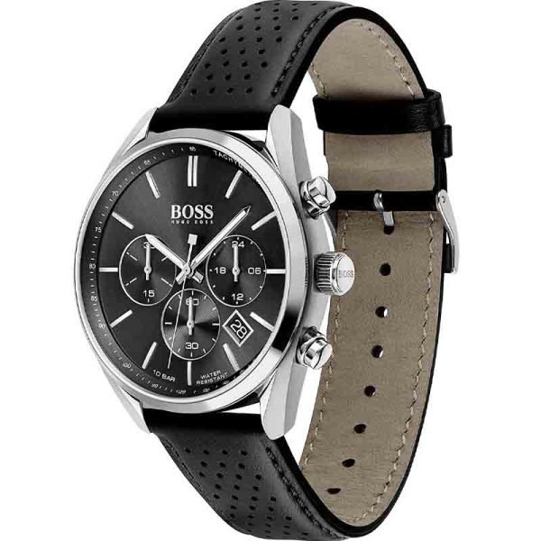 Hugo Boss Men’s Quartz Leather Strap Black Dial 44mm Watch 1513816