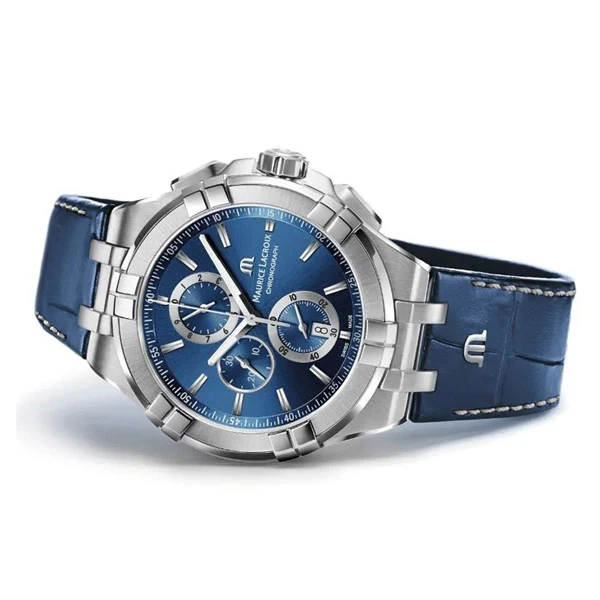 Maurice Lacroix Aikon Blue Leather Strap Blue Dial Chronograph Quartz Watch for Gents