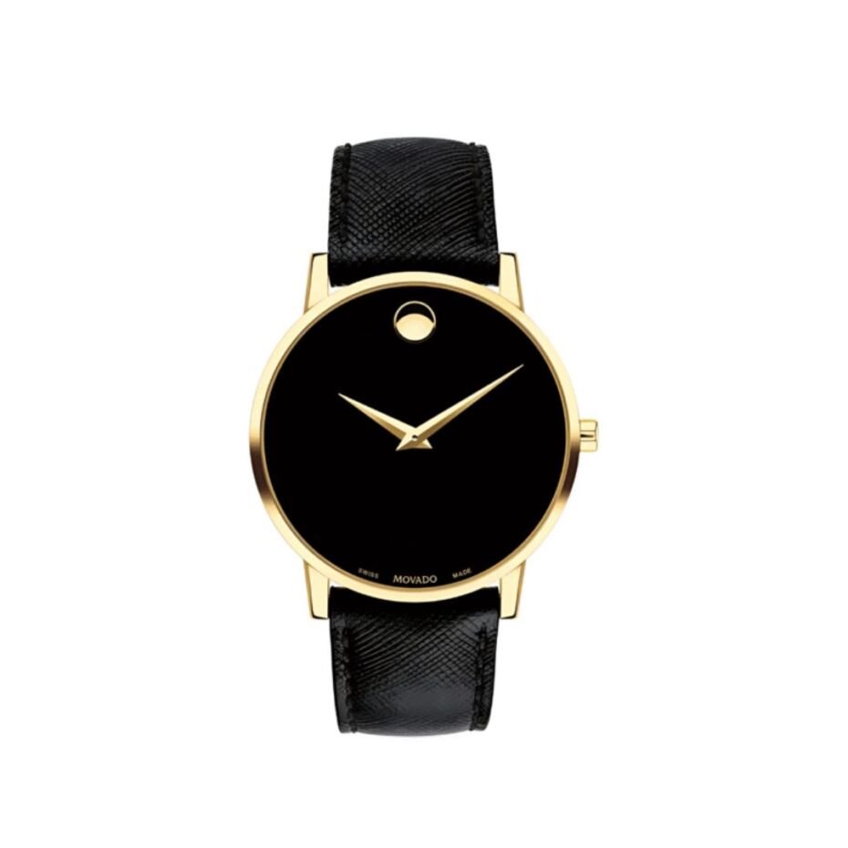 Movado Men’s Quartz Swiss Made Leather Strap Black Dial 40mm Watch 0607195