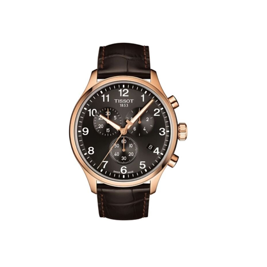 TISSOT Men’s Quartz Swiss Made Brown Leather Strap Black Dial 45mm Watch T116.617.36.057.01